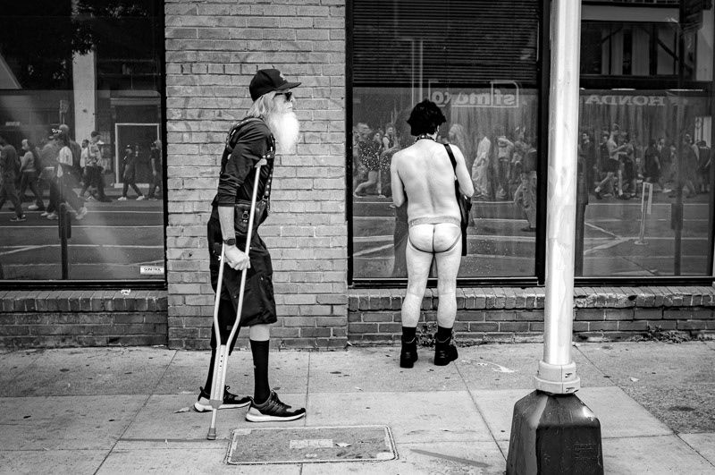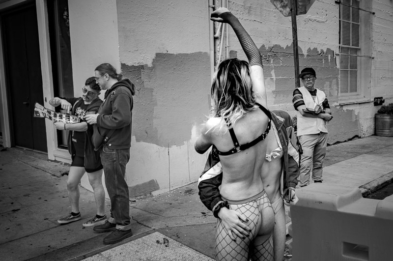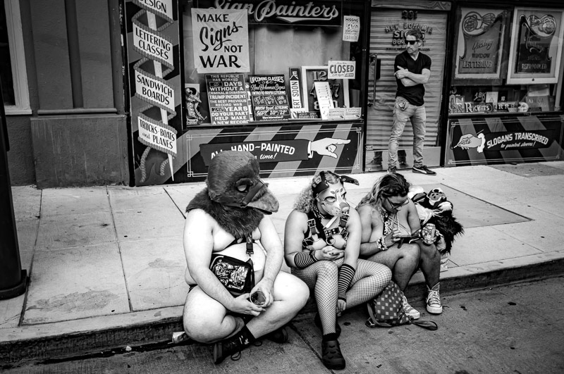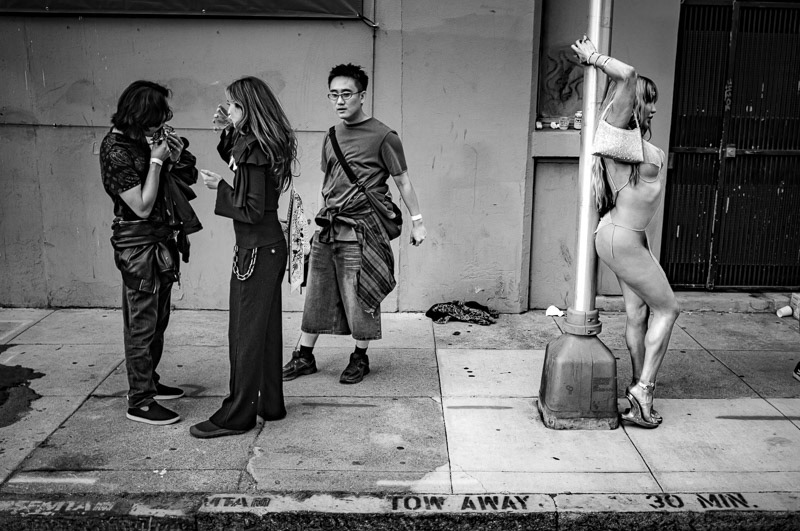 Armed with patience and a deliberate eye, this work isn’t about the vulgar or the obvious. It’s about catching the brief, surreal moments that tell bigger stories. The humor, absurdity, and connection. It’s the poetry of the overlooked. A half-smile in the shadows of an intimate gathering, a stranger’s eccentric costume catching the perfect slant of light. This is street photography on the edge. Balanced between voyeurism and artistry, and always hunting for the shot no one else would dare to see.